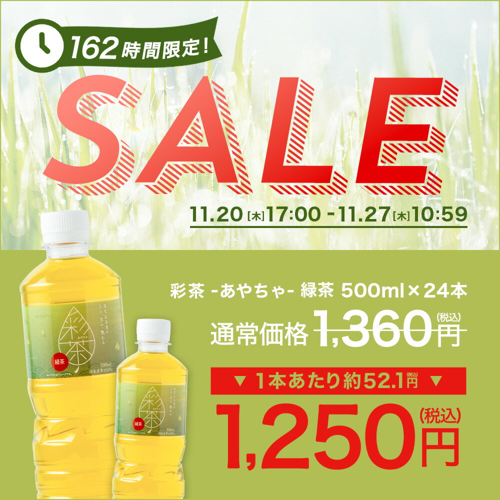 【1本あたり52.1円★最安値に挑戦】緑茶 彩茶 - あやちゃ - 500ml×24本 お茶 ラベルレス 鹿児島県産茶葉使用 送料無料 ペットボトル ライフドリンク カンパニー LIFEDRINK 日本茶 まとめ買い ライフドリンク