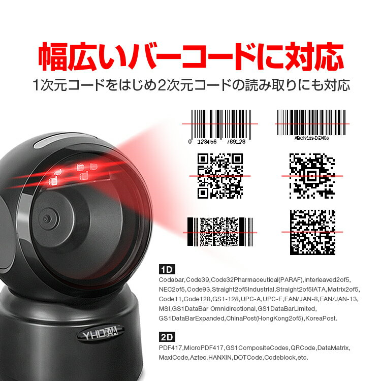 置き型バーコードスキャナー USB接続 1次元コード/2次元コード対応 ロボットコードスキャナー 自動スキャン/スリープ LP-YHD9300D 送料無料