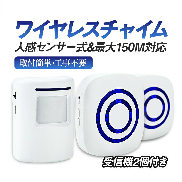 ワイヤレスチャイム 受信機2個 人感センサー 玄関チャイム 無線最大150m 静音モードあり コードレスチャイム 3段音量調節 LP-YF256RS2 送料無料