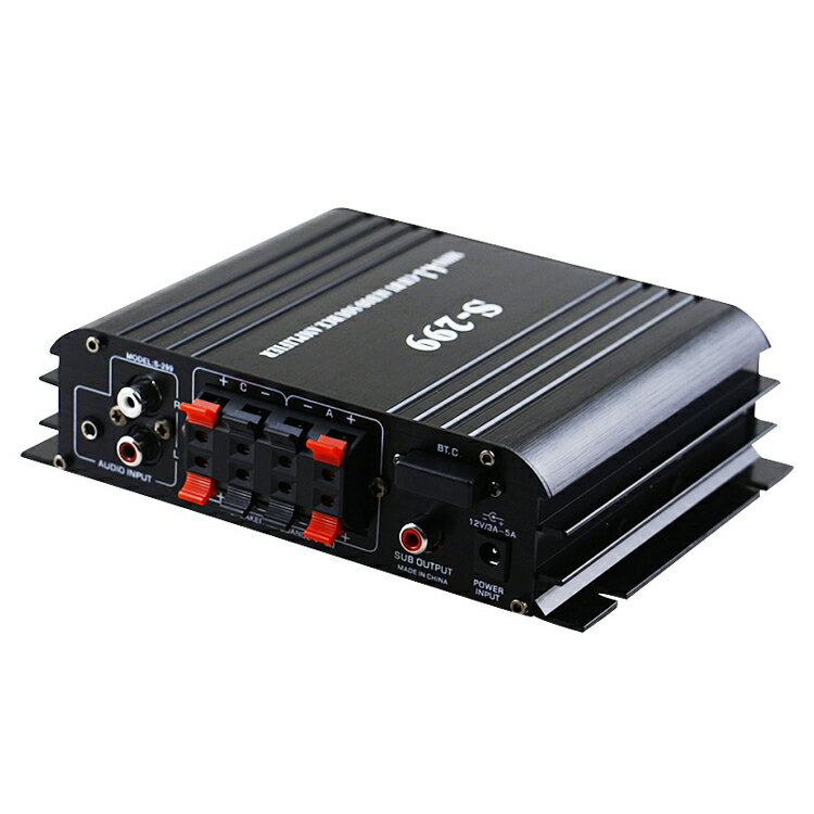 ◆送料について ゆうメール(または定形外郵便) 限定送料無料!(代引きはゆうメール不可) ※発送方法は選択出来ません。 ※メール便(または定形外郵便)配送商品について ※メール便、定形外、ゆうパケットなどポスト投函の発送方法について運送会社および弊社の紛失・破損保証は御座いません ※取付及び使用方法のサポートはございません。 ※マニュアル、取扱説明書等は付属いたしません。 ◆メール便配送商品について ※当商品はメール便送料無料でご提供させていただいております。メール便につきましてはサイズ制限があるためパッケージなしの簡易梱包での発送をしております。予めご承知頂けますと幸いです。 ゆうメール(または定形外郵便)配送商品は基本的に 追跡なし、ポスト投函での配送となります。 また、万が一サイズ等の理由でポスト投函が出来なかった場合、不在届が投函されます。 その際に長期間ご連絡がない場合、当店への返送が行われます。 再配達には追加料金がかかることになりますので、予めご了承の程お願いします。 当店より発送後1週間が経過しても商品が到着しない等の場合、まずはポストの方をご確認ください。 不在票がございましたらお近くの配送会社営業所へご連絡下さい。 ■並行輸入商品のご注文に関しての注意事項■ ※輸入品の為、外装や本体に輸送に伴う傷やスレ、破れや潰れなどある場合がございます。 ※パッケージ外装の損傷等(商品本体に影響がない場合)による理由での返品交換は受け付けておりませんことご了承下さい。 ※パッケージは付属しない場合がございます。 ※取付及び使用方法のサポートはございません※生産ロットによりロゴデザインの変更、ロゴが無い場合がございます。 ※取付や使用によるトラブル等に関し弊社の保障は一切ございません。 ※仕様やデザイン、パッケージ等は予告なく変更される場合がございます。 ※製造時期により外観や仕様に若干の変更がある場合がございます。予めご了承ください。 ※海外輸入品のため、多少サイズおよび現物と出品画像には誤差がある場合がございます。■商品特徴 コンパクトなボディにLEDデジタル表示やUSB/SDカードプレーヤーなどの機能も備えた、パワーアンプです。 定格4×40Wのメイン出力にサブウーファーを加えたパワフルで広がりのあるサウンドは、主音量のほか高音/低音の個別調整が可能です。 Bluetooth5.0による安定したワイヤレス接続にも対応しており、音楽プレーヤーやスマートフォンなどのデバイスと無線接続が行えます。 美しく酸化皮膜処理された本体ボディには、耐久性や放熱性が高いアルミニウム合金を採用しています。 安定した高出力動作が行えるDC12V/5AのPSE認証済ACアダプターと、操作用リモコンが付属いたします。 【商品仕様】 ・カラー:ブラック ・動作電源:DC12V/3〜5A ・定格出力:4×40W ・スピーカーインピーダンス:4〜8Ω ・SNR:>80dB ・周波数応答帯:20Hz〜20KHz ・最小THD:<0.4% ・サブウーファー出力:RCA ・音声入力:RCA、AUX(3.5mmミニジャック) ・Bluetooth:V5.0 ・接続距離:最大約10m ・対応メディア:USBメモリ、SD(MMC)カード ・再生可能形式:MP3 ・外形サイズ:約176×120×44mm ・重量:約518g ・セット内容:アンプ本体、リモコン(※コイン電池CR2025は付属なし)、PSE認証有りACアダプター(DC12V/5A) ◆注意事項 ※ステレオ出力は非対応です。 ※本商品は技適マークが貼付されていない無線機器であり、国内で使用する場合は電波法違反になる恐れがございます。 ご使用の際には十分にご注意下さいますようお願い致します。 ※出品物はデジタルアンプのみとなり、その他のものは付属しません。 ※ACアダプター/シガー電源アダプター(別売り)接続時の電源ON/OFF操作は、付属の専用リモコンからのみ行えます。 ※海外製品につき、FMチューナー機能は搭載されておりません、英語マニュアルは汎用ものであり、ご参考のみでお願い申し上げます。 ※当商品を分解ならびに改造された後の返品および交換には応じる事が出来かねます。 ※使用可能なACアダプター/シガー電源アダプターの仕様や種類については、その詳細をお答えすることが出来かねます。 ※日本語説明書は付属いたしません。また、接続や使用方法についてのサポートは行っておりません。 ※輸入品の為、輸送に伴う小傷やスレ、潰れなどが外装にある場合がございます。 ※製造時期により外観や仕様に若干の変更がある場合がございます。予めご了承ください。 ※本商品は技適マークが貼付されていない無線機器であり、国内で使用する場合は電波法違反になる恐れがございます。 ご使用の際には十分にご注意下さいますようお願い致します。 ※小さなお子様の手の届かない場所で保管してください。 ※日本語説明書は付属いたしません。また、使用方法についてのサポートは行っておりません。 ※ご使用済みの場合は返品返金対応しかねます。 ※手計測のため、寸法や重量など実際とはことなる場合がございます。 ※色違い、