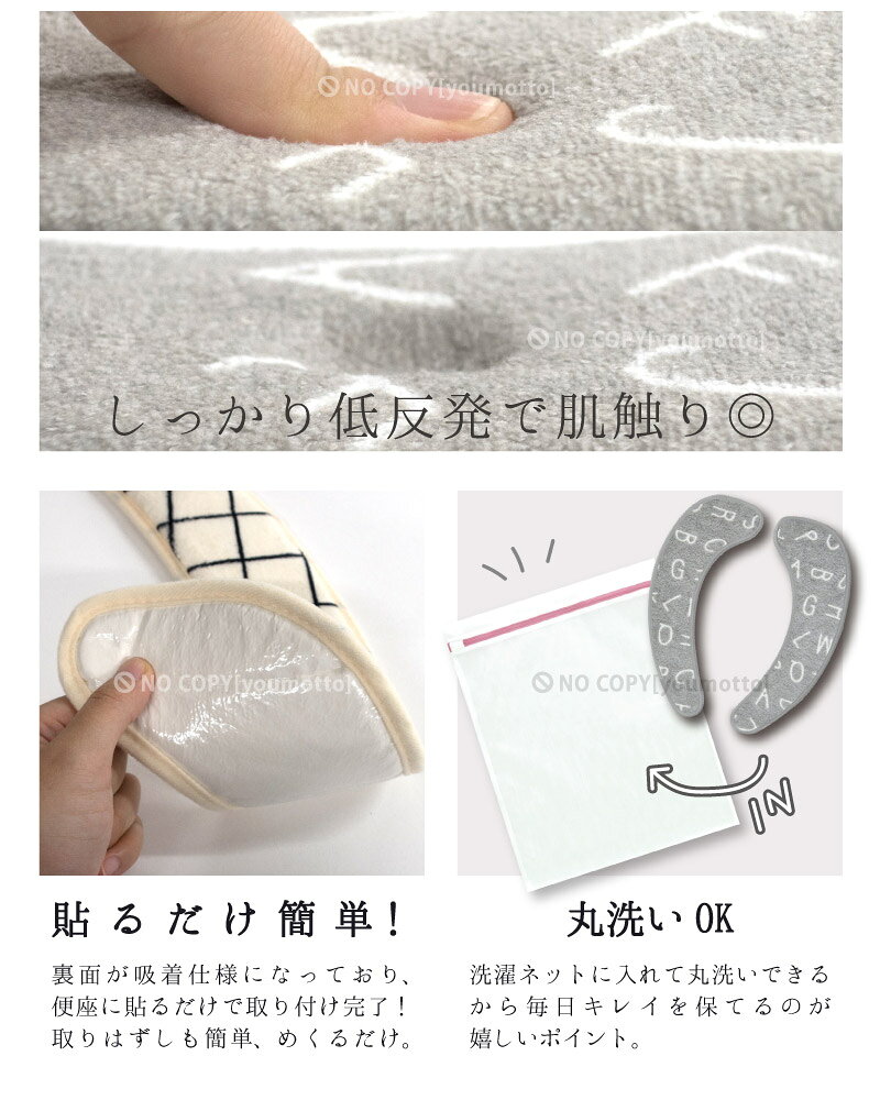 Saltoru?(ソルトル?)シリーズ 吸着便座シート[トイレ 吸着便座シート トイレタリー 簡単 ベニワレン アルファベット 白 グレー モノトーン シンプル 都会的 塩系 おしゃれ インテリア 洗える 洗濯可 丸洗い 抗菌 防臭 消臭 Ag+]