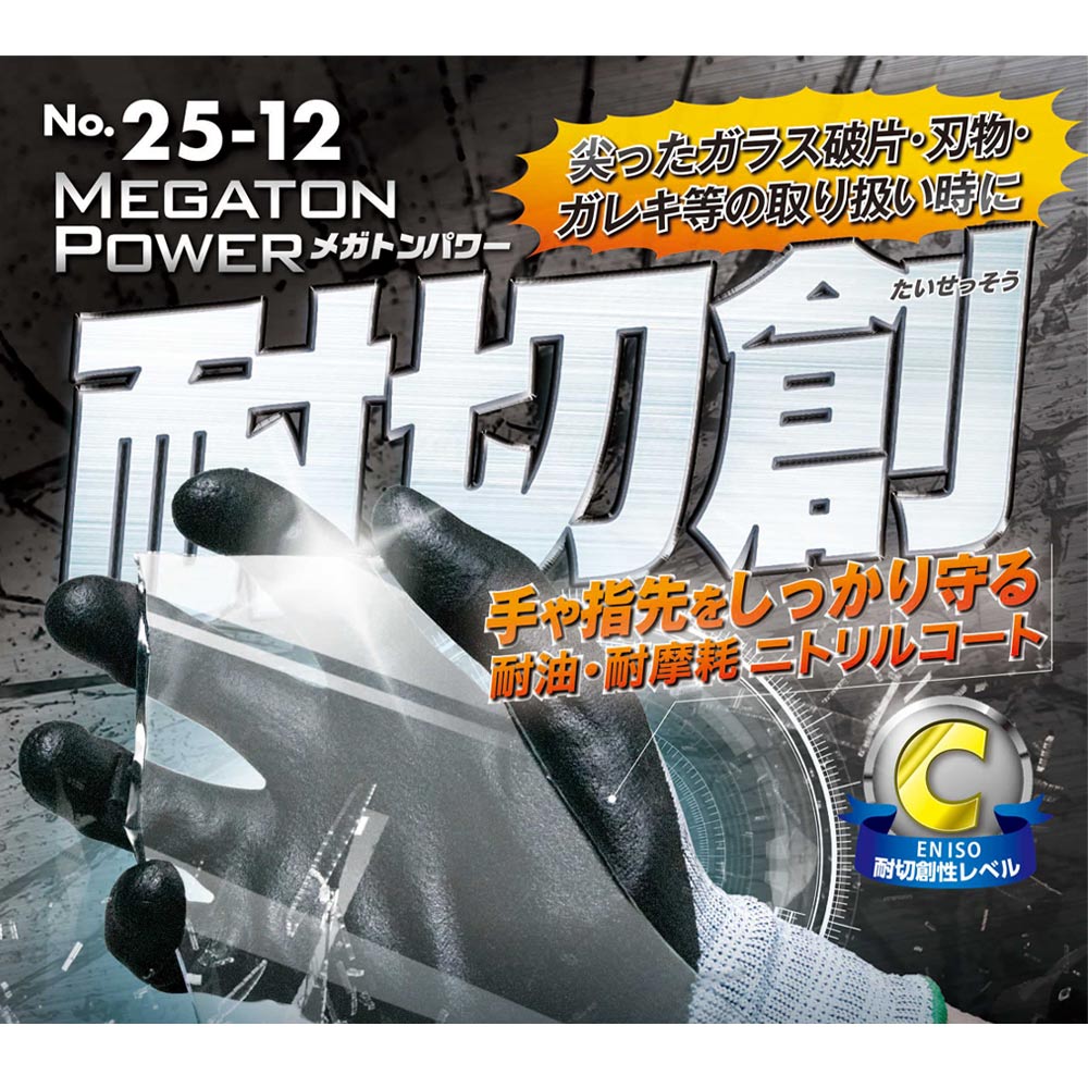 作業手袋 メガトンパワー 耐切創 25-12 作業 手袋 グローブ 作業用品 作業用手袋 ニトリルゴム ニトリル手袋 背抜き 耐摩耗 耐引裂 耐突刺 富士手袋 FUJITE
