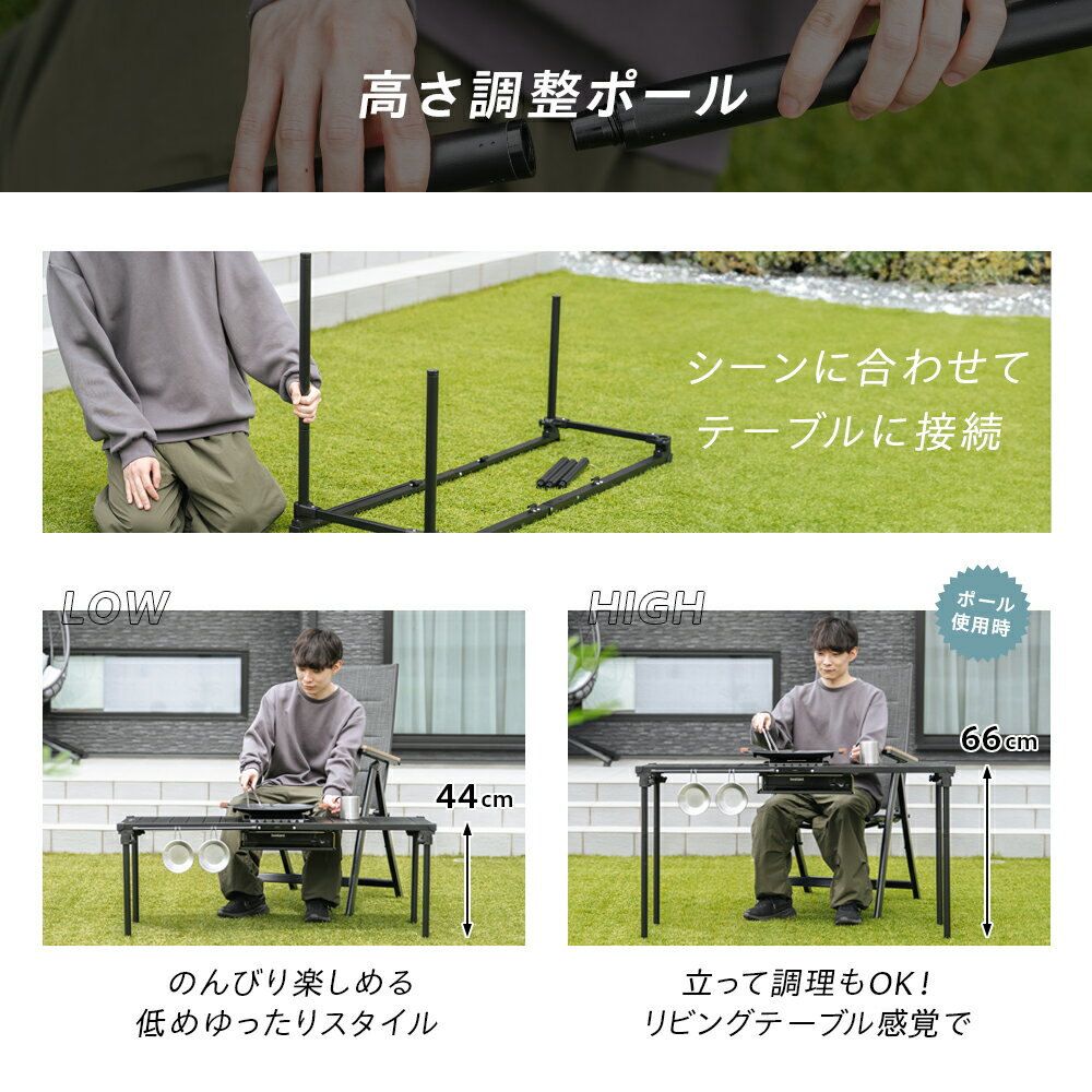 マルチテーブル 高さ調整ポール ブラック 黒 軽量 スリム ポール 調整 アウトドア キャンプ BBQ おしゃれ ガーデン 庭 レジャー お手入れ簡単