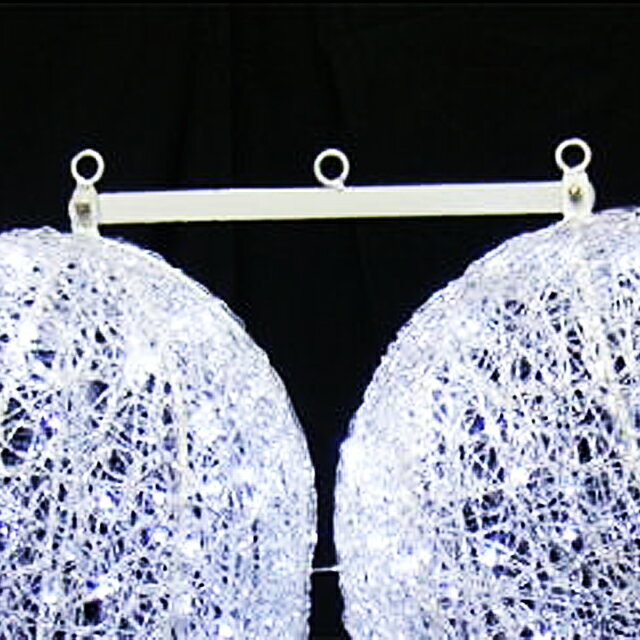形状:3D モチーフ 防滴仕様 色:白 LED:400球 サイズ:約W1m×H53cm×D45cm 消費電力:約16W/100V 重量:5kg 連結不可・常点仕様 ※注意事項 屋外の使用の際には必ず接続部に防水処理を行ってください。 イルミネーション業者様用のイルミネーションライトです。 骨組みの塗装が剥げている場合や傷がある場合が御座います。 ネジ穴が合わないなど、多少の加工が必要な場合が御座います。 予めご了承頂けますようお願い致します。