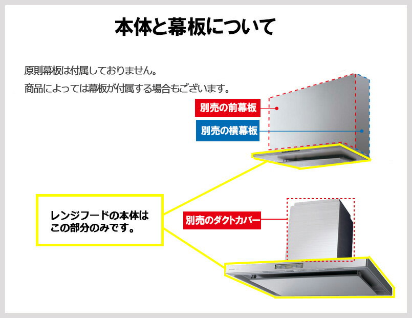 [品名]エコナビ搭載 フラット形レンジフード コンロ連動形 整流板捕集方式 90cm幅 シロッコファン・タクトスイッチ 色=シルバー [特徴]●幕板・横幕板は別売です。●油トルネード機能●HEMS(AiSEG2)連携可能 ●調理物の温度を検知し自動的に風量を選択する「エコナビ」機能搭載●ラクに洗える整流板●室内の温度を検知し、自動で排熱する「排熱運転」機能搭載●調理機器の入・切に連動します(換気連動タイプの調理機器使用時)●残置運転機能付(運転時間は調理により異なります) ●給気シャッター、排気用の電動シャッター(FY-MSSJ06)との連動可能(別売の連動用コードFY-WW001が必要です)●吊戸棚対応奥行き寸法:375mm±10mm●DCモーターで低消費電力●風量一定制御機能付●LED照明(5W)●BL3型相当品 [お願い]●IHクッキングヒータ(電磁調理器)等を使用して蒸気が多量に出る調理をされますと、レンジフード本体に結露(水滴)が生じ、滴下することがあります。その際は滴下前に乾いた布で拭き取ってください。 検索ワード用:各種ガス機器 ↓この商品の幕板(別売)はこちら↓ 前幕板 幅:900mm H=464mm FY-MH946C-S(対応吊戸棚高さ:500mm) H=564mm FY-MH956C-S(対応吊戸棚高さ:600mm) H=664mm FY-MH966C-S(対応吊戸棚高さ:700mm) H=430~730mm FY-MH9SL-S(対応吊戸棚高さ500~800mm) 横幕板 対応吊戸棚奥行き:375mm H=464mm FY-MYC46C-S(対応吊戸棚高さ:500mm) H=564mm FY-MYC56C-S(対応吊戸棚高さ:600mm) H=664mm FY-MYC66C-S(対応吊戸棚高さ:700mm) H=430~730mmFY-MYCSL-S(対応吊戸棚高さ:500~800mm)※コチラの商品は幕板・横幕板及び同時給排ユニット別売です ↓この商品の幕板(別売)はこちら↓ 前幕板 幅:900mm H=464mm FY-MH946C-S(対応吊戸棚高さ:500mm) H=564mm FY-MH956C-S(対応吊戸棚高さ:600mm) H=664mm FY-MH966C-S(対応吊戸棚高さ:700mm) H=430〜730mm FY-MH9SL-S(対応吊戸棚高さ500〜800mm) 横幕板 対応吊戸棚奥行き:375mm H=464mm FY-MYC46C-S(対応吊戸棚高さ:500mm) H=564mm FY-MYC56C-S(対応吊戸棚高さ:600mm) H=664mm FY-MYC66C-S(対応吊戸棚高さ:700mm) H=430〜730mmFY-MYCSL-S(対応吊戸棚高さ:500〜800mm)