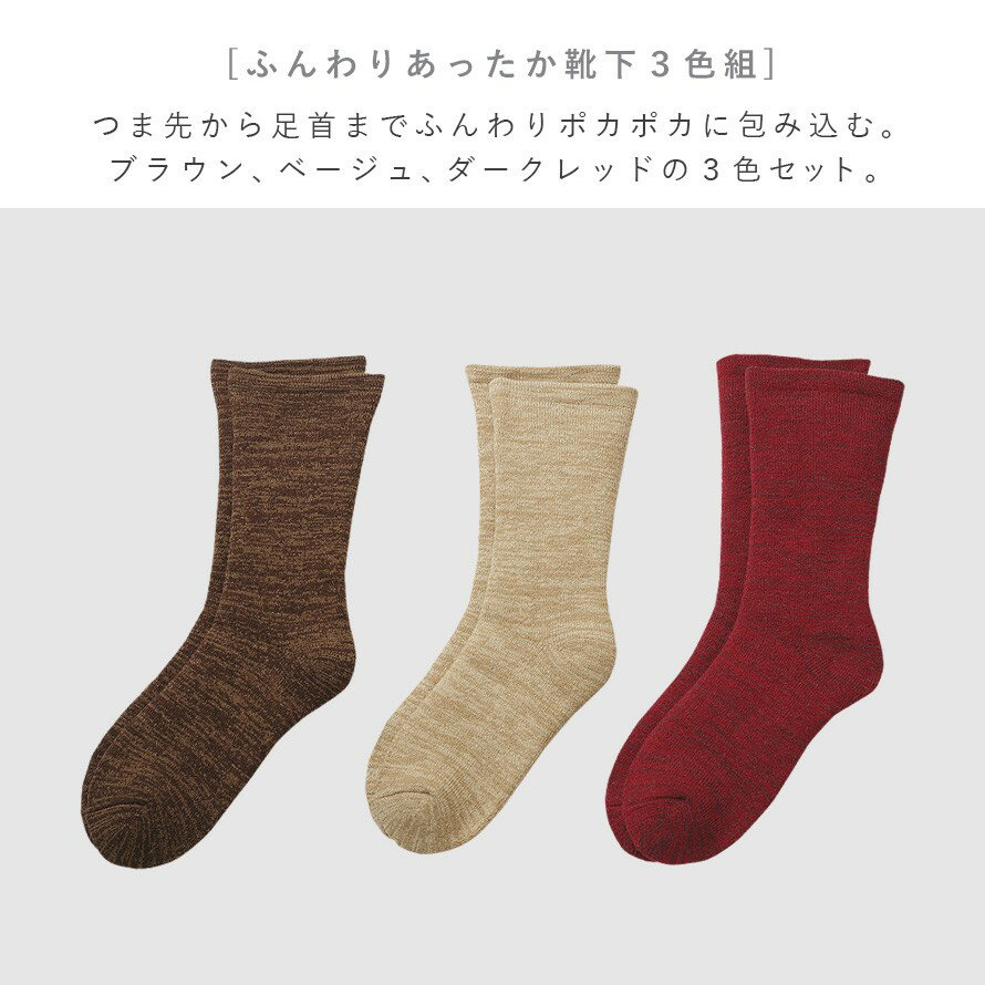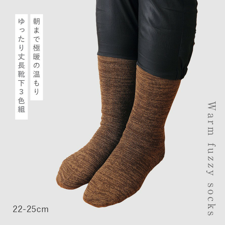 履き口 ゆったり 靴下 レディース 冬 暖かい 【3色組】 22-25cm 裏起毛 防寒 冬用 秋冬 あったか おしゃれ 【 口ゴムなし みたいな履き心地 】 足首 ゆるめ 口ゴムゆったり 締め付けない むくみ 介護 シニア まとめ買い 3足 セット たっぷり裏起毛ゆったり丈長ソックス
