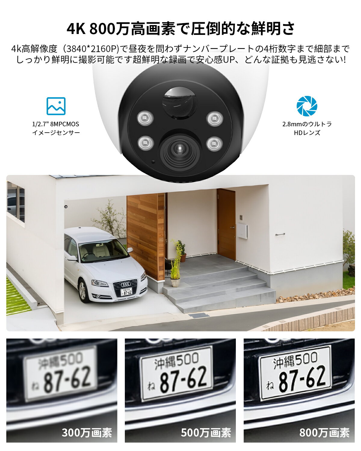 【4K 800万高画素 ・16倍ズーム・遠距離も超精細】 防犯カメラ 屋外 ソーラー 工事不要 10000mAh ワイヤレス バッテリー 監視カメラ 人体検知 電源不要 録画機能 電池式 車上荒らし 双方向通話 屋外用 家庭用 車上荒らし