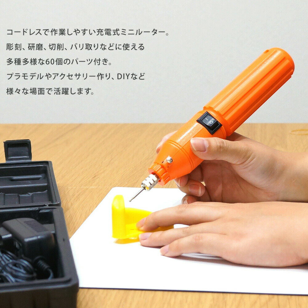 電動ホビールーター ミニルーター ルーター 60点 セット 電動 ルーター コードレス ミニルーター 静音 ペン型 充電 研磨 磨く 削る 彫刻 切断 穴あけ つや出し 錆取り 汚れ落とし 【送料無料】 [XG751]
