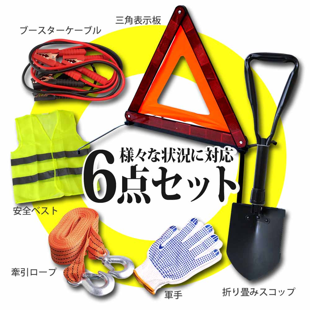 車載用 エマージェンシーキット 三角停止板 牽引ロープ ブースターケーブル 安全ベスト スノースコップ 軍手 緊急 12V 24V 【送料無料】 [XG762]