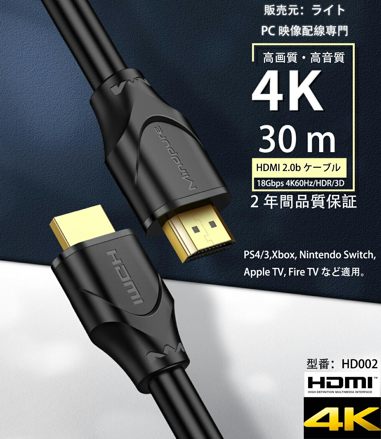 HDMIケーブル 30m 30.0m 3000cm Ver.2.0b規格 4K(24hz) 3D テレビ対応 イーサネット 高耐久 ハイスピード HIGH-Speed Ethernet 20メートル Switch PS5/PS4/3 Fire TVなど適用 1m 1.5m 2m 3m 5m 10m 20m 30m もあります 送料無料