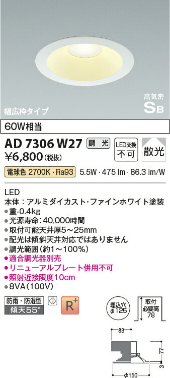 KOIZUMI (NS)コイズミ照明 LEDダウンライト AD7306W27