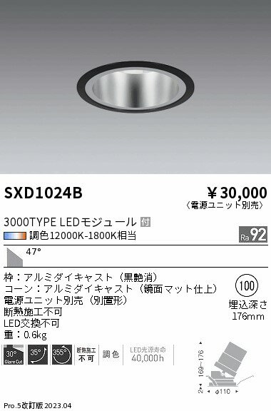 SXD1024B 遠藤照明 Synca 調光・調色 LED ユニバーサルダウンライト 埋込径Φ100 調色(12000K〜1800K)CDM-TC70W器具相当 (専用電源ユニット別売)