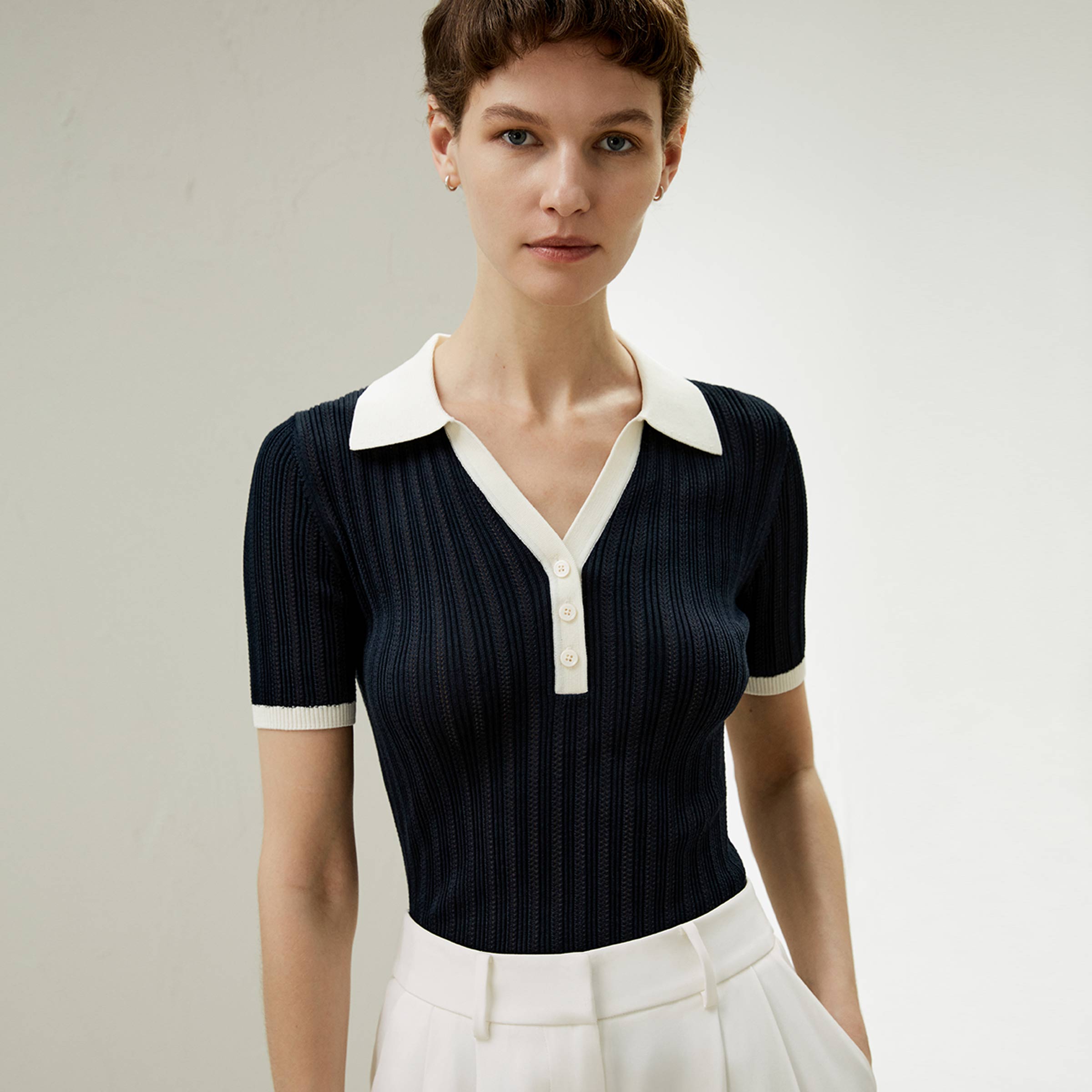 LILYSILK(リリーシルク) ポロシャツ レディース 半袖 開襟 ニット ブランド ビジネス きれいめ 大きいサイズ 職場 ボタンダウン おしゃれ シルク 黒 30代 40代 オフィス 通勤 プレゼント ギフト 送料無料