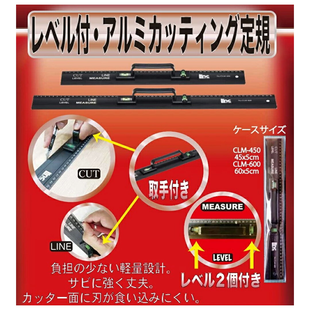LINC レベル付アルミカッティング定規 取手付き 45cm CLM-450 / 60cm CLM-600 楽天物流