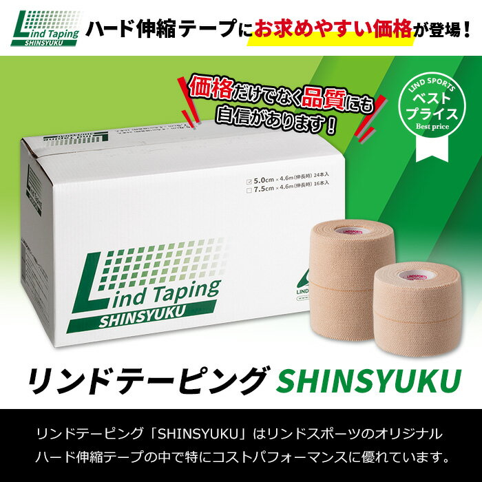 ハード伸縮テープ リンドテーピング SHINSYUKU 選べる2サイズ 幅50mm/長さ4.6m×24本入り 幅75mm/長さ4.6m×16本入り 足首 手首 ひざ 腰 固定 スポーツ 運動 整骨院 病院 部活 LINDSPORTS 送料無料