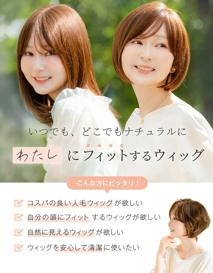 人毛ウィッグ【選べるS/Mサイズ×3スタイル】 「ナチュフィット人毛100% ショート/ボブ/ミディ」自然 フルウィッグ ウイッグ 人毛 ウィッグ人毛 医療用ウィッグ ウィッグ医療用 医療 かつら 白髪隠し ショート 女性 普段使い つむじ バレない 安い おすすめ L1N#