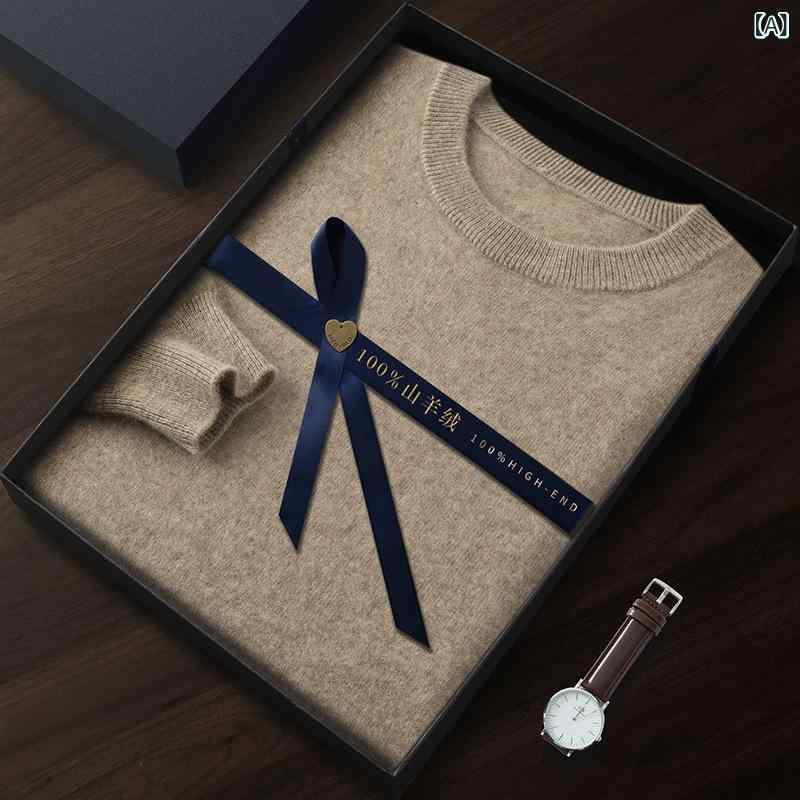 ニット メンズ 羊毛 セーター ラウンドネック プルオーバー ゆったり 95% 羊毛 秋冬 ミドルエイジ ベージュ グレー ネイビー キャメル