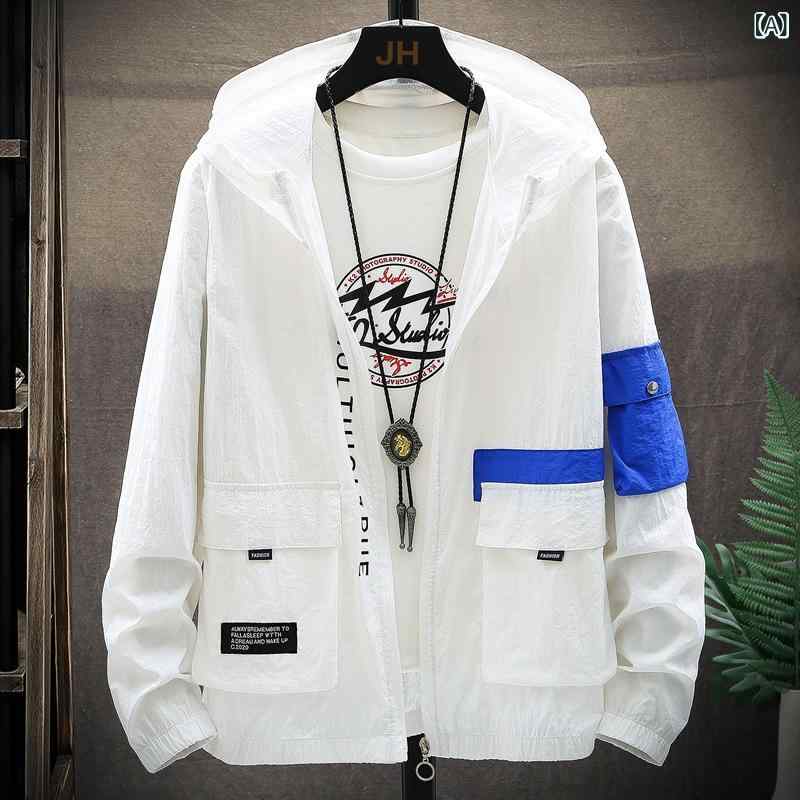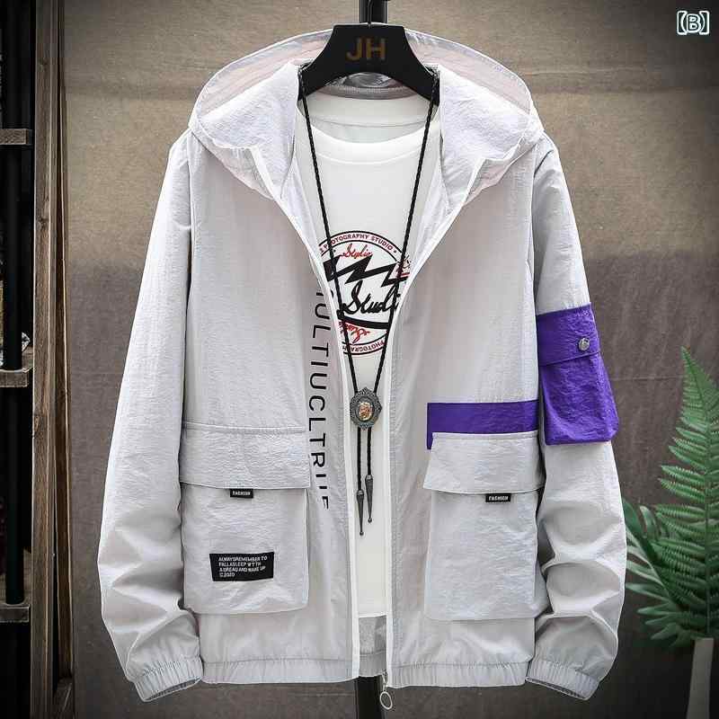 ジャケット 男性用 通気性 スポーツ アウトドア カジュアル ウェア 薄手 長袖 ポリエステル 切り替え ホワイト グレー ピンク系 ブルー(x3)