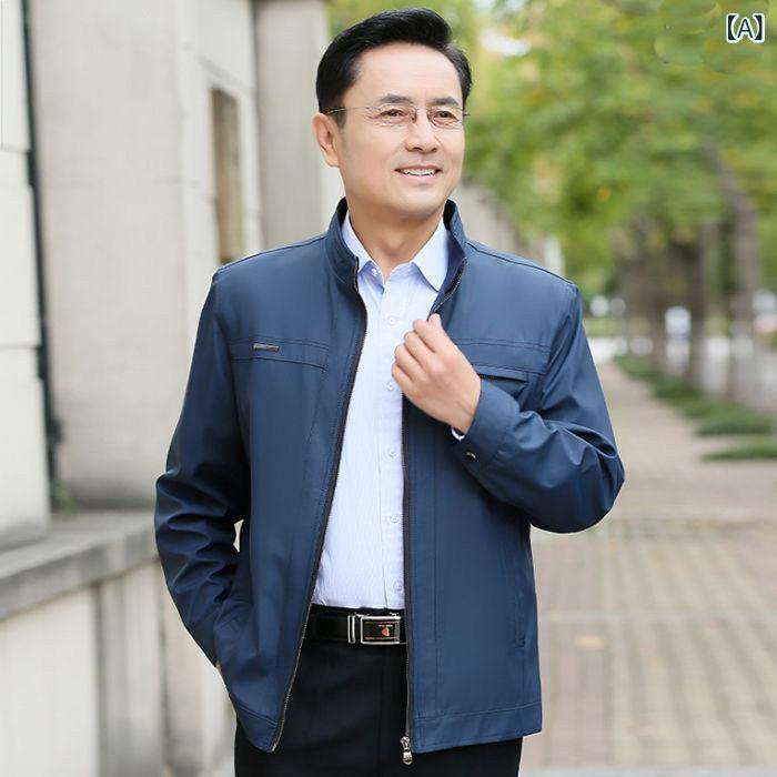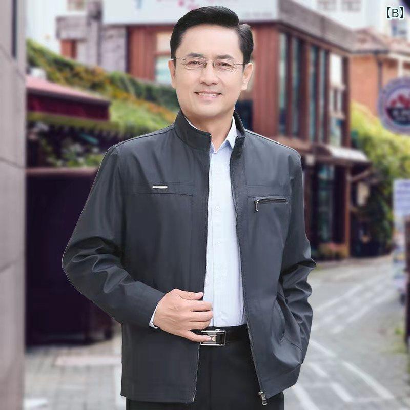 ジャケット 男性用 中老年向け 防寒着 裏起毛 厚手 ブルゾン スタンドカラー ポリエステル 無地 秋冬 アウター・商品カテゴリ: ジャケット・素材機能: 通気性.耐摩耗性・風・対象: ・襟型: 立ち襟・フィット: レギュラー・前立て: ジッパー・フード: なし・厚さ: 厚手・柄: 無地・誤差範囲: 1-2cm・生地: 化繊混紡・メイン素材: ポリエステル・メイン素材の含有量: ・裏地: ポリエステル・裏地の含有量: 85%・適用場面: 日常・ディテール: ステッチ・裾のデザイン: ストレート・加工: アイロン不要・着丈: 標準・ポケット: サイドシームポケット・着方: アウター・袖丈: 長袖・袖のタイプ: 通常袖・対象年齢: 成人・対象性別: 男性・色: ブルー.ブラック(春秋装).ブラック.ブルー(裏起毛)・サイズ: 170.175.180.185.190
