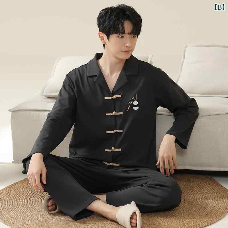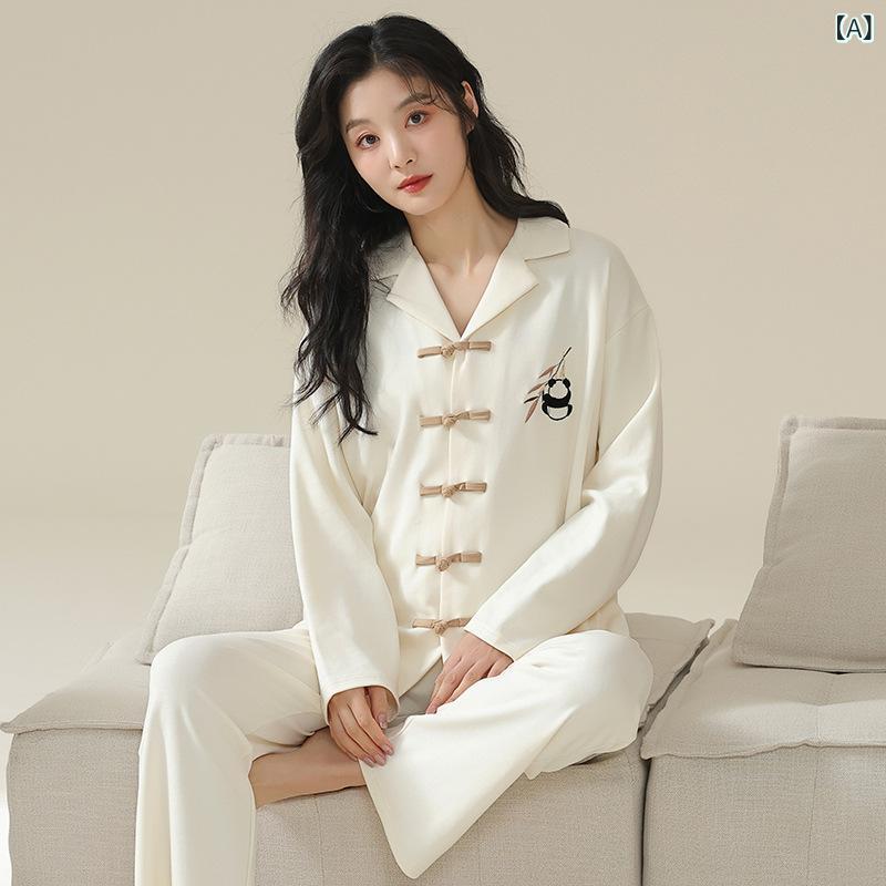 パジャマ レディース 春秋 長袖 中国風 チャイナボタン メンズ 部屋着 寝間着 綿混紡 通気性 リラックス ルームウェア