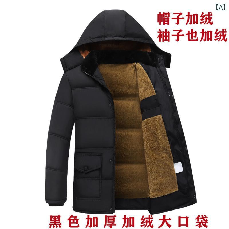 綿ジャケット メンズ 男性用 裏起毛 パパ シニア 冬 アウター 厚手 防寒 ブラック 黒