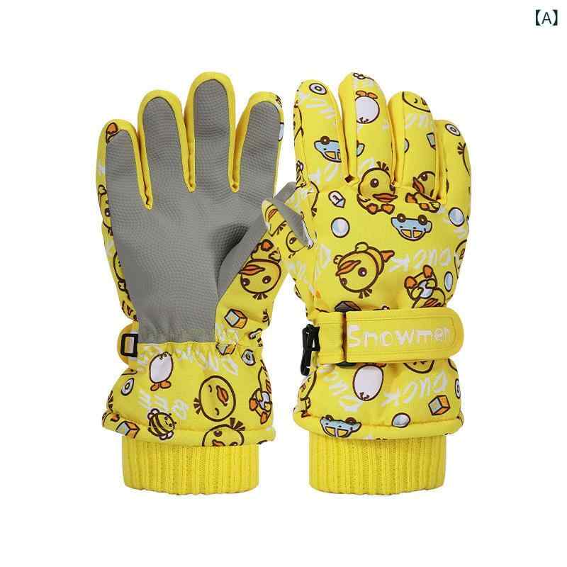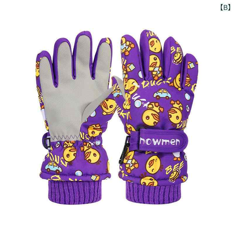 手袋 キッズ 冬用手袋 五本指 カートゥーン柄 防寒手袋 防風 防水 滑り止め 厚手 裏起毛 裏ボア あったか グローブ 小黄鸭 小紫鸭 ピンク企鹅 藍色企鹅