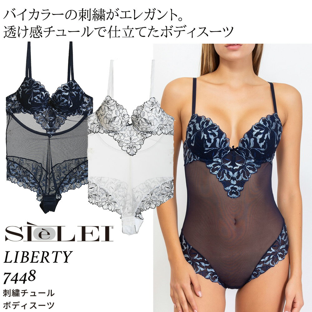 SIeLEI/シーレイLIBERTY リバティ 7448直輸入 イタリア インポートランジェリーイタリア ボディスーツ刺繍チュール2WAYストレッチアンダーワイヤー3D立体成形パッドオールインワンクロッチ開閉式