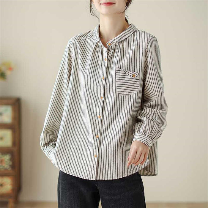 ストライプ シャツ ブラウス レディース 春 秋 丸襟 可愛い シャツブラウス レディース シャツ ブラウス 長袖 トップス カジュアル ストライプ柄 大きいサイズ 体型カバー ゆったり 通勤 春秋 シンプル オーバーサイズ きれいめ おしゃれ 30代 40代 50代 送料無料