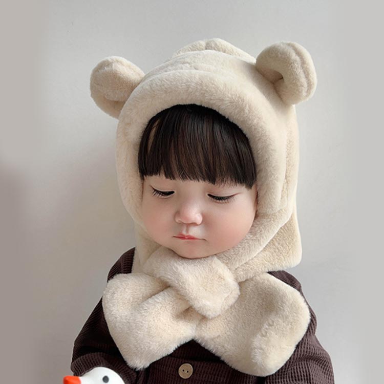 帽子 マフラー キッズ ベビー 秋冬 防寒 防風 保温 フェイクファー ふわふわ もこもこ 子供 フード付きマフラー 一体型 ネックウォーマー くま耳付き 男の子 女の子 プレゼント おしゃれ 可愛い 保育園 クリスマス 送料無料