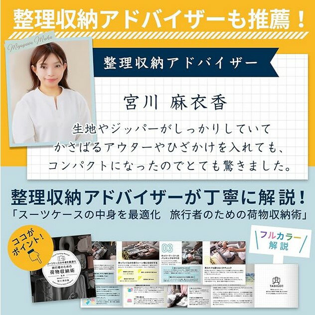 【じゃらん掲載】 TABIGO!!圧しゅくん 圧縮袋 旅行 トラベルポーチ 圧縮ポーチ 圧縮バッグ 便利グッズ 衣類 洋服 パッキング【ファスナーで簡単に圧縮】旅行中のかさばる荷物をスッキリ!TABIGO!!の圧縮ポーチは、畳んだ衣類を簡単に圧縮できます。トラベルポーチのファスナーを閉めるだけで、スーツケース内がスッキリまとまり、パッキングが楽になります。さらに、両側ポケット仕様により、着用前と着用後の衣類を分けて収納することができ、衛生的で効率的な使い方が可能です。コンパクトな収納と衣類の衛生管理を同時できる便利グッズです!【生地へのこだわり】軽量でありながらも高い耐久性を備えたナイロン素材を使用した旅行用圧縮袋で、繰り返しの使用にも傷みにくく、手洗い・丸洗いが可能です。速乾性が高いため旅行先でも洗濯物の乾燥に非常に便利です。また耐水性があるため万が一水がかかっても、中の衣類は安心です。【様々なシーンで活躍】旅行や出張だけでなく、衣替えでクローゼットの整理にも活躍します。畳んだ衣類をコンパクトに圧縮した状態で収納し、スーツケースや、クローゼットを綺麗に整理整頓できます。また、小物入れとしても利用可能で、アクセサリーや化粧品、電子機器などをまとめて収納することも可能です。【整理収納アドバイザー推薦】整理整頓のプロ 宮川麻衣香さんも推薦!「生地やファスナーがしっかりしていて、かさばるアウターやひざかけを入れてもコンパクトになったのでとても驚きました。」また整理収納アドバイザー監修のスーツケースの中身を最適化するための荷物収納術も付いています。【じゃらんに掲載】旅行雑誌じゃらんでTABIGO!!の「圧しゅくん」「くるくる圧しゅくん」が掲載されました。【トラベルポーチ詳細】◆サイズ 40長さ x 30幅 x 3高さ◆重量 176 g◆カラー・ブラック×ブラック・ネイビー×レッド・グリーン×グリーン・グレー×イエロー・ブラック×レッド・ネイビー×ホワイト・グレー×ピンク・オレンジ×グレー
