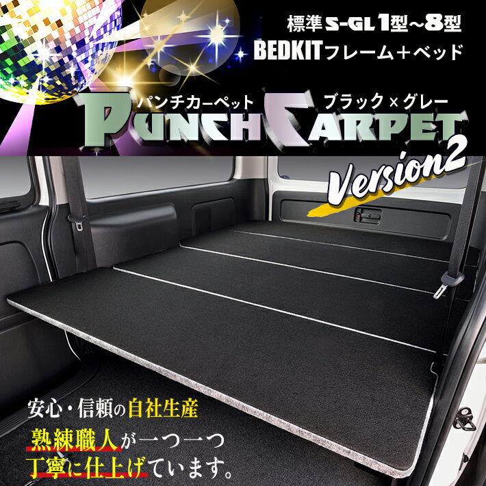 【期間限定★送料無料★2025年11/28(0:00)〜2025年12/4(24:00)】ハイエース 200 標準 S-GL ベッドキット 1型〜8型 パンチカーペットVer'2 Black & gray