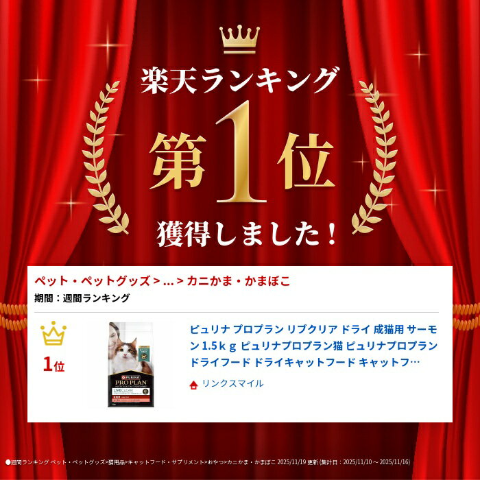 ピュリナ プロプラン リブクリア ドライ 成猫用 サーモン 1.5kg ピュリナプロプラン猫 ピュリナプロプラン ドライフード ドライキャットフード キャットフード ねこ餌 猫餌 猫の餌 ネコフード ねこごはん 成猫 無添加キャットフード 無添加