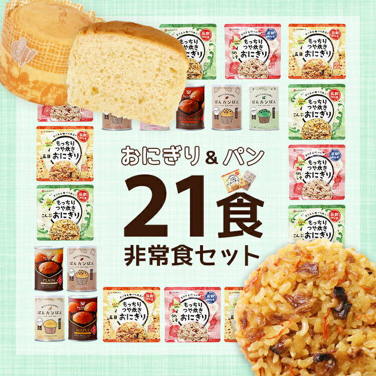 もっちりつや炊きおにぎりとパンの21食セット 【 5年保存 非常食 保存食 北海道米100% 特許製法 そのまま 食べられる レトルト 常温保存 常備食 備蓄食 保存米 ごはん ご飯 おすすめ 美味しい キャンプ 登山 送料無料 米 調理不要 】
