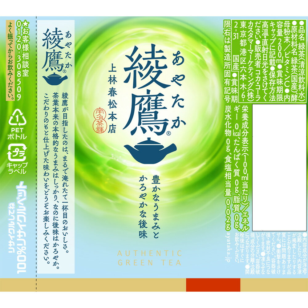 11/20〜11/22限定P2倍 【抽選で1等2万ポイント当たる!】【送料無料】コカ・コーラ 綾鷹 あやたか 200ml×1ケース/30本お茶 緑茶 200ml ペットボトル ボトル まとめ買い 小容量 ミニボトル