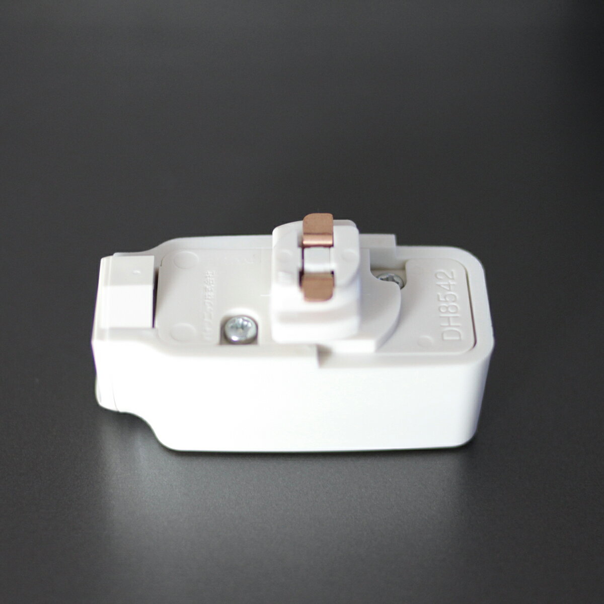商品スペック 用途 ダクトレールに使用する際の変換プラグです。 ペンダントライトを複数吊り等する場合にご活用ください。 サイズ 約W6cm×H3cm×D2.7cm 取付方法 ・ダクトレールとプラグの極性側を合わせる(画像参照) ・右に90°回し、カチッと音がすれば完了です。 ※取付に不備があると落下の原因になりますので必ず音がするのを確認してください。 ・取り外しの際はプラグの側面にあるレバーを下げながら左に90°回してください。 注意事項 ・一般屋内用器具です。屋外や水気、湿気のある場所では使用しないでください。 ・重量が5kg以下の照明器具にご使用ください。 ・取付け、取り外し時は必ず電源をお切りください。