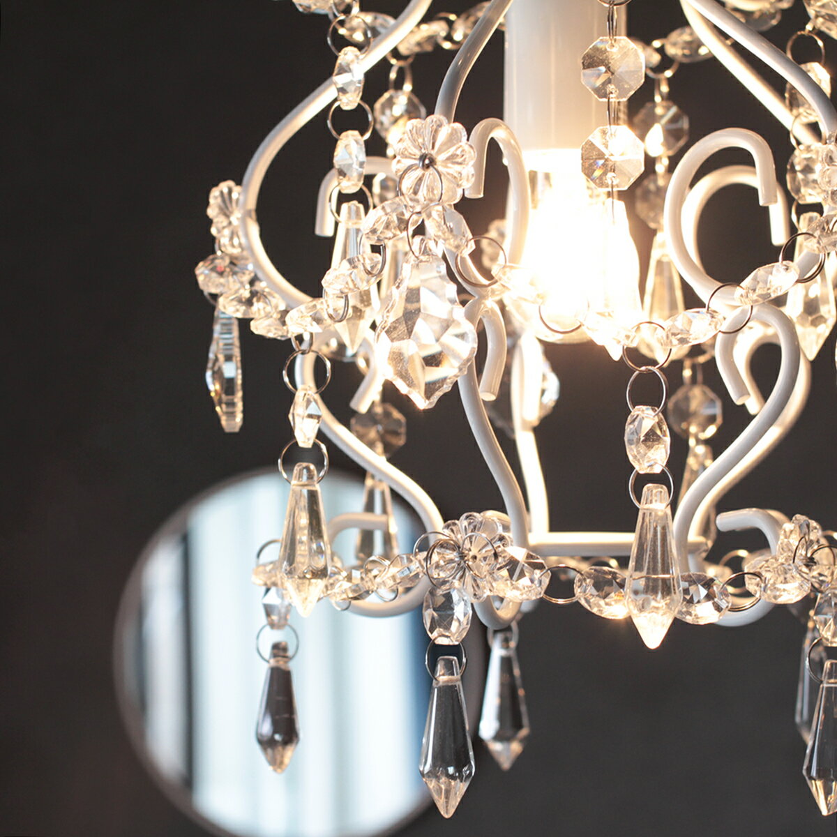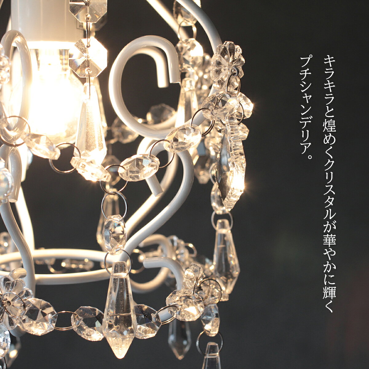 ペンダントライト 照明 クリスタル ガラス プチシャンデリア おしゃれ かわいい 吊り下げ ミニシャンデリア モダン エレガント シック ナチュラル アンティーク 北欧 キッチン ダイニング 玄関 階段 廊下 トイレ 洗面所 E17 led 1灯 ホワイト 長さ調整 店舗 カフェ 新築