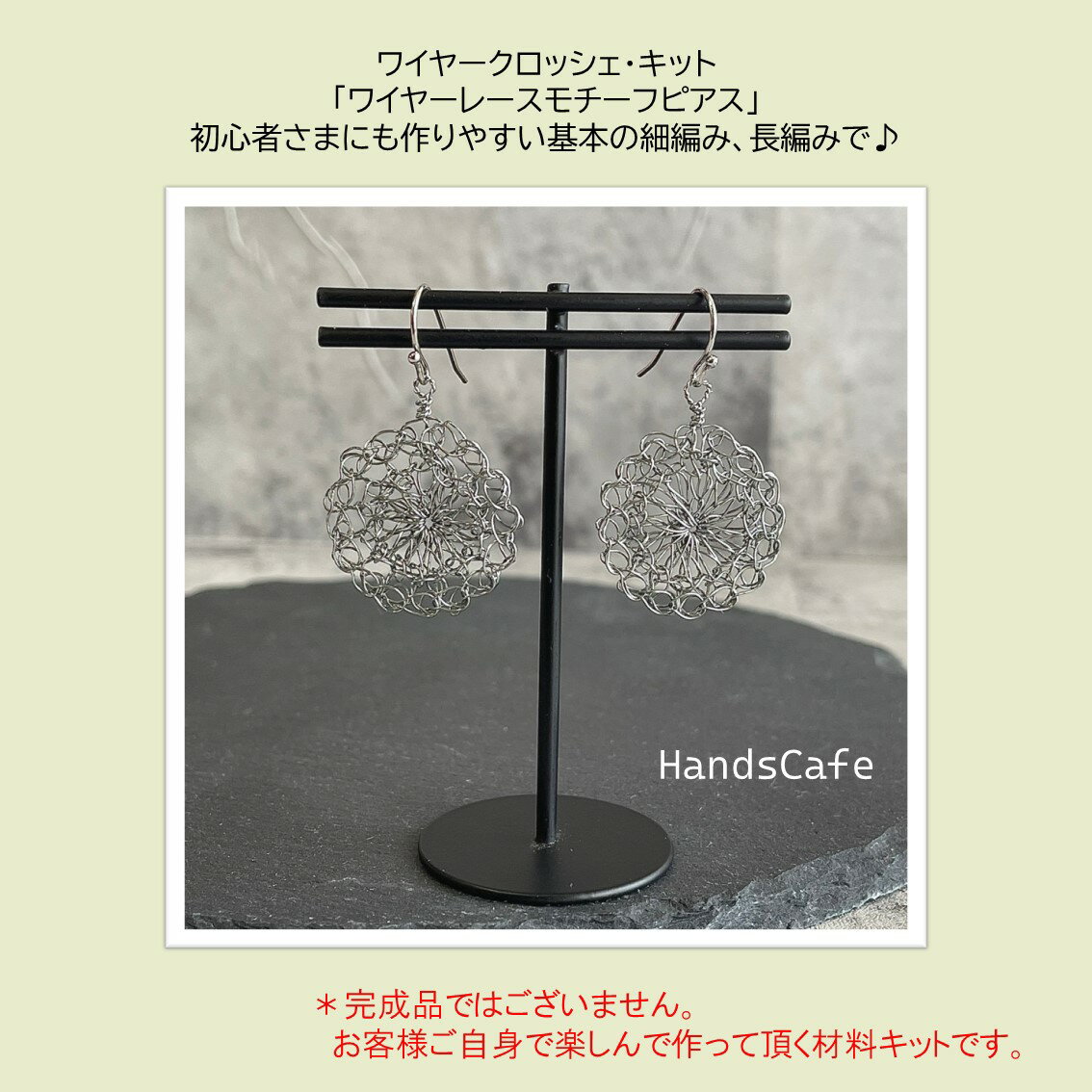 【ワイヤーを円形編みで!】ワイヤーレースモチーフのピアス/ワイヤークロッシェキット ピアス 細編み 長編み 円形編み ビーズ キット ヨーロピアンワイヤー 軽い おしゃれ ハンドメイド アクセサリー キット レディース 手作り 初心者 大人