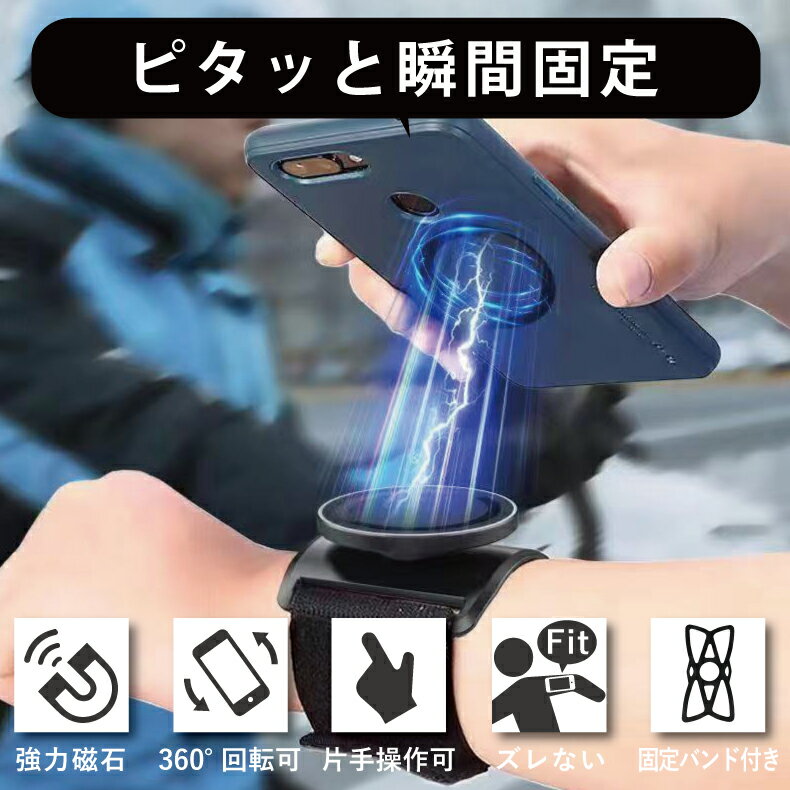 スマホアームバンド マグネット ランニング 回転式 スマホ ゴムで固定 アームバンド 調節可 スマホホルダー 角度調節 360度回転 安定性抜群 携帯 防水 通気性 フィット感 スポーツ スマホケース ポーチ iPhone Android アイフォン アンドロイド 片手操作 置くだけ