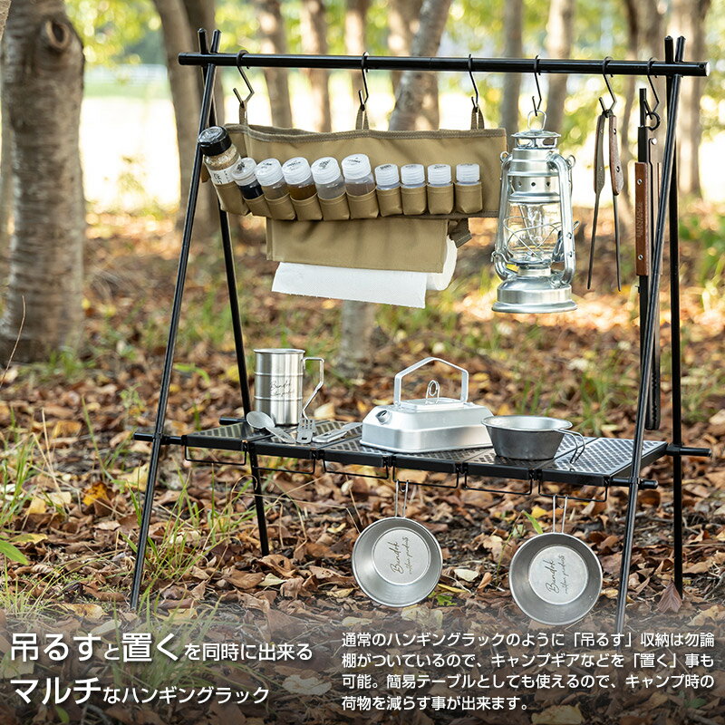 【送料無料】マルチハンギングラック/BUNDOK(バンドック)/BD-919/ハンギングラック ハンガーラック キャンプ アウトドア 棚 天板 フック 収納 テーブル 折りたたみ 折り畳み コンパクト 耐熱 軽量 アルミ 収納ケース 収納袋