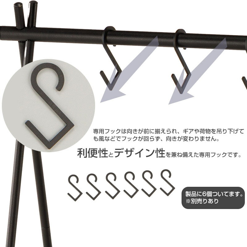 「吊るす」と「置く」を同時にできるマルチなハンギングラック。通常のハンギングラックのように吊るす収納はもちろん、棚がついているのでキャンプギアなどを置く事も可能。簡易テーブルとしても使えるので、キャンプ時の荷物を減らす事ができます。専用フックは向きが前に揃えられる特殊な形状を採用。オシャレさと機能性を兼ね備えています。組み立ては、フレーム同士がコードで繋がっているので、繋げる場所などを確認しなくても簡単に組み立て可能です。専用収納ケースでコンパクト収納。素材は、丈夫で軽量なアルミを使用。重量も総重量が約1.36kgと軽量なので、持ち運びに便利。商品名マルチハンギングラックブランド・メーカーBUNDOK(バンドック)製造国中国材質アルミニウム商品サイズ(約)470×775×820mm重量(約)1.36kg商品仕様耐荷重/フック:6個合わせて約10kg 棚板:6枚合わせて約10kgセット内容/本体×1・収納ケース・フック×6個・棚板×6枚注意事項※使用前に破損などの異常がないことを確認してから使用してください。※製品に変形・破損・亀裂・激しい色あせ等、異常のある場合には絶対に使用しないでください。大変危険です。※乱暴に取り扱わないでください。衝撃で破損することがあります。※傾斜・凹凸のある場所等、不安定になる所には設置しないでください。転倒・破損してケガの原因になります。※製品の上に座る・立つことは絶対にしないでください。※寄り掛かる・揺する・必要以上に強い力で押したり、物を置く等、無理な力を製品に与えないでください。破損・ケガの原因になります。※一部鋭利な部品がございますので、組み立ての際、指・手等のケガに注意してください。※作業台・工作台として使用しないでください。※子供によるいたずら(乗ったり・ゆすったり・又は製品の移動)をさせないようにしてください。※一点に集中して荷重がかからないよう、平均的に荷重がかかるようにしてください。破損・ケガの原因になります。※本製品に物をのせたまま移動しないでください。※雨や水気を避けてください。サビ・劣化の原因になります。製品が濡れた時は必ず水気を拭き取り、よく乾燥させてください。※高温・多湿になる場所、直射日光や風雨にさらされる場所には常設・放置しないでください。製品の劣化・変形・破損の原因になります。※極端に火気の近くに置かないください。※設置・収納時のケガに十分ご注意ください。※ぶつかったり、指を挟む等、思わぬケガの原因になりますので、お子様には組立てや収納をさせないでください。またお子様一人での使用もおやめください。※フローリング等、床に直接設置されますと床面にキズがつくことがありますので、ご注意ください。※汚れは薄めた中性洗剤を布につけて十分に落とし、洗剤成分をよく拭き取ってください。※お子様の手の届かない、安全な場所で保管してください。※天災などの不可抗力や、不当な修理・改造による故障・破損に対する補償などはいたしかねます。※本製品および梱包材を廃棄される際はお住まいの自治体の取り決めに基づいた処理をお願いします。※商品の仕様は予告なく変更することがあります。※本製品は屋外レジャー用に収納性・携帯性を重視した製品です。常設及び日常使用などの頻度の高いご使用は避けてください。※商業施設での使用やレンタル業などで使用しないでください。※レンタル業・中古販売における他人への貸し出し・販売・譲渡によって発生した、損害・事故・各部品の損傷・劣化におきましては一切責任を負いかねますのであらかじめご了承ください。