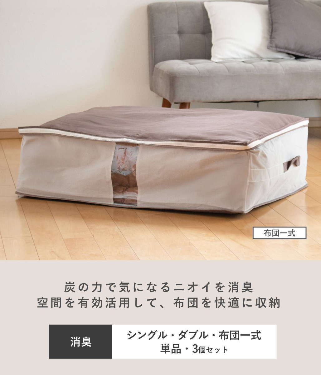 布団収納 Snimu 炭入り 消臭 羽毛布団収納ケース クローゼット ( コンパクト すき間 隙間 収納 布団収納袋 布団 袋 隙間収納 一組 シングル ダブル用 羽毛布団 掛け布団 敷き布団 シングル用 ニオイ 汗 加工 )