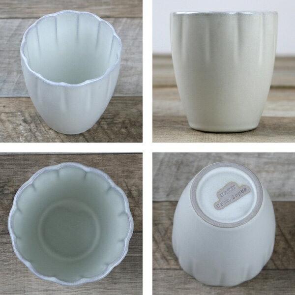 湯呑み 300ml コップ 花カップ 花シリーズ 洋食器 陶器 日本製 ぎんはく ( カップ 湯飲み 湯呑 輪花 マグカップ 持ち手なし フリーカップ 湯呑茶碗 湯のみ 茶器 和モダン おしゃれ かわいい 和洋 )