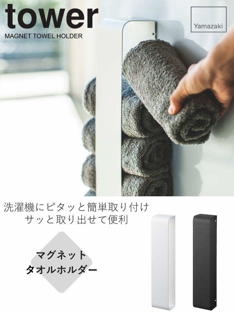 【レビュー特典付き】 山崎実業 tower マグネットタオルホルダー タワー ( 4903208036177 タワーシリーズ タオルホルダー 収納 ランドリー マグネット 洗濯機 洗濯機横 洗濯機前面 磁石 洗面所 壁面 壁 冷蔵庫 木ネジ タオル )