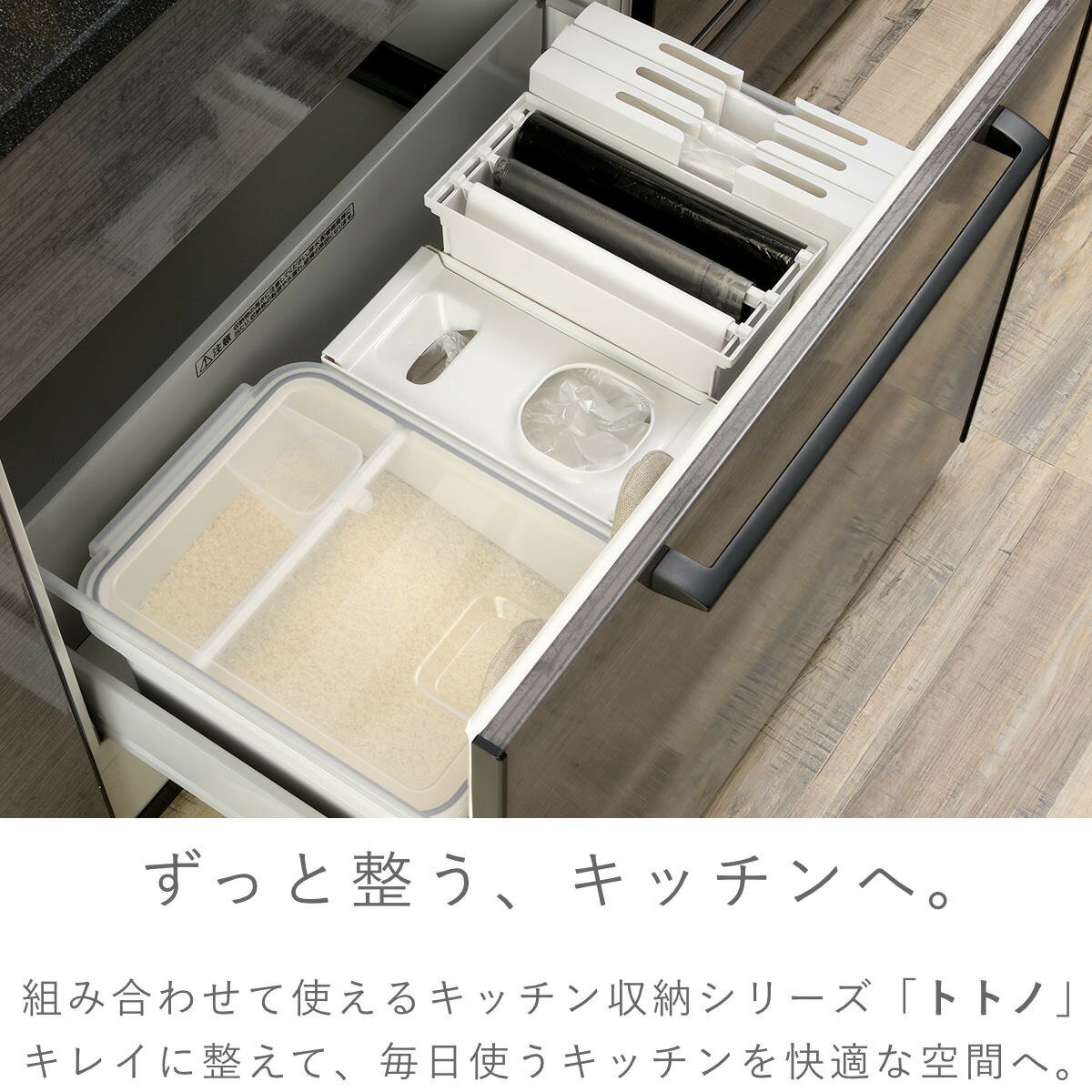 米びつ トトノ 引き出し用 米びつR 5kg 10kg ( 抗菌 計量カップ付き 米櫃 こめびつ ライスストッカー シンク下 システムキッチン キッチン 収納 米 保管 保存 引き出し用米びつ 引出し用 5キロ 10キロ )