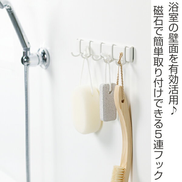 marna マーナ きれいに暮らす。 マグネットフック5連 W620 ( フック 磁石 マグネット 風呂 浴室 収納 小物収納 壁掛けフック 壁面 壁 傷つけない バスルーム お風呂 洗面所 洗面 脱衣所 洗濯機 キッチン 冷蔵庫 壁面収納 白 )