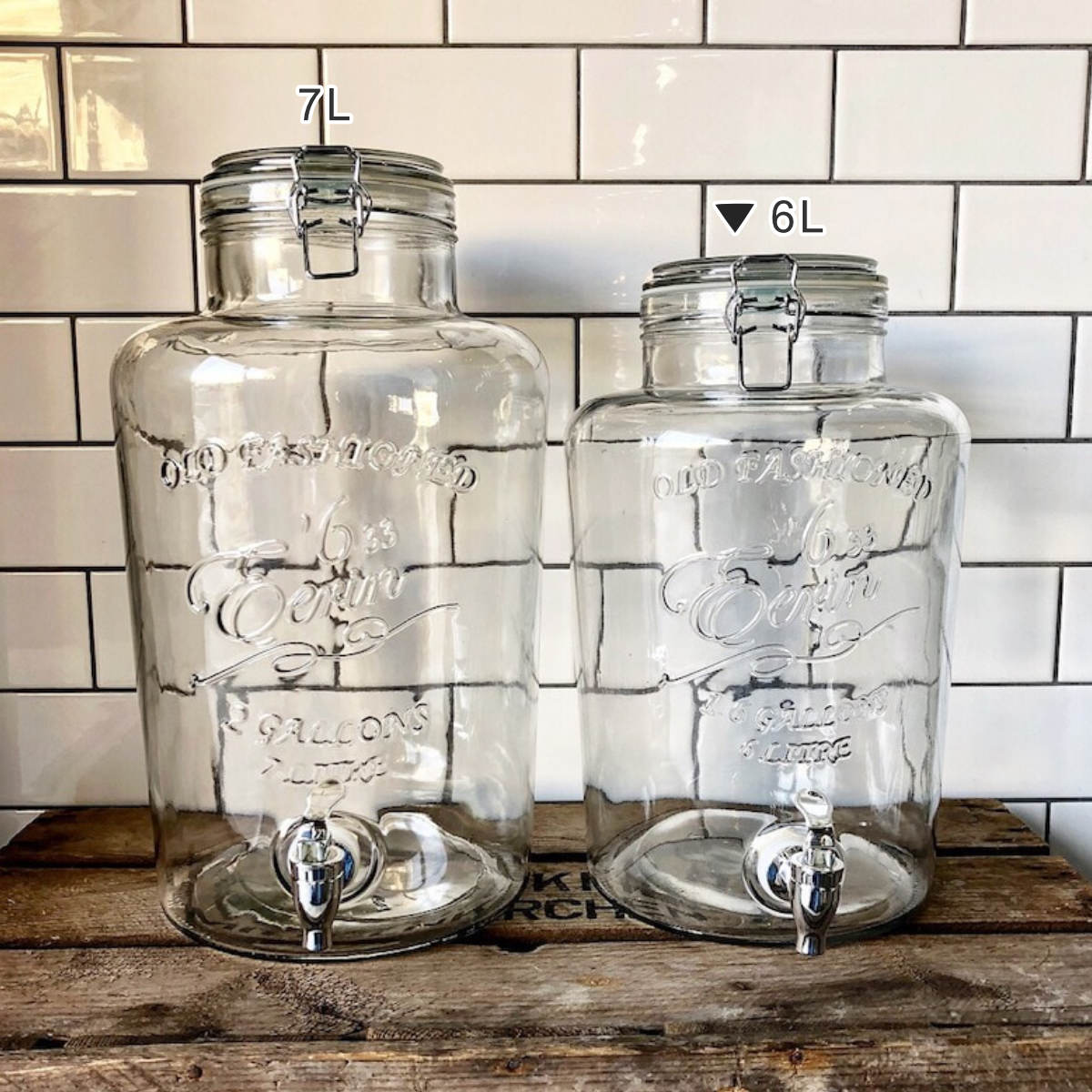 サイズ約 幅20×奥行25×高さ32(cm)容量約 6L内容量1個材質本体、フタ:ガラス蛇口、ナット:ABSパッキン:シリコンワイヤー固定具:スチール生産国中国製食器洗い乾燥機使用不可電子レンジ使用不可注意事項※耐熱・強化ガラスではありませんので、煮沸洗浄はできません。※蓋を密閉した状態では正常に給水できません。蓋の密閉金具をゆるめ、少し開いた状態でご使用下さい。※お酒を漬ける場合、発酵しガスが発生しますので、必ず蓋の密閉金具を開けた状態で漬けて下さい。備考※重量は商品の特性上、多少の誤差があります。区分返品・キャンセル区分(小型商品)ギフトラッピングページを見る●コールドドリンク専用のガラス製ドリンクサーバーです。●アンティークの瓶のような、シンプルでクラシカルなデザインが特徴です。●フタのロックを解除してから、蛇口のコックを起こすと中身を注ぐことができます。●梅酒、サングリア、フレーバーウォーターやフレッシュジュースを入れてホームパーティの飲み物にも。●6Lの大容量でカフェやレストラン、イベントでのご利用にも最適です。おすすめポイントお家でカフェ気分が味わえるドリンクサーバー 6Lお家でカフェ気分が味わえるドリンクサーバーです。容量は6Lでお水を入れて普段使いのウォーターサーバーとしてや、フルーツウォーターやサングリアなどを入れてホームパーティーなどのイベントの際にも雰囲気が出ておすすめです。インテリアの一部として楽しめるデザイン置くだけで空間が映える、海外のキッチンの片隅にありそうなデザインです。凹凸のあるエンボス加工を施した立体的な刻印が、ワンポイントのアクセントに。商品詳細使いやすいレバー式の蛇口蛇口のコックを起こすと中の飲み物が出てきます。下から上に起こすので、間違って蛇口が開いてしまうリスクが軽減されます。シンプルでお手入れしやすい構造衛生面が必要な蛇口周りは分解して洗いやすい構造になっています。蛇口とナットは水に強く、錆びにくい樹脂製です。※ご使用前に蛇口のナットを確実にしっかりと締めてください。※緩んでいる場合、隙間から液体が漏れることがございます、お飲み物を入れる前に水道水などで水漏れがないか確認してください。しっかり閉まるワイヤーロックフタ周りのパッキンとワイヤーロックでがっちり密閉できます。中の飲み物を出す時は、ワイヤーロックを解除してから蛇口を開けてください。※ロックした状態で注ぐことはできませんサイズご注意点気泡、接続筋、擦り傷・鋳型傷などについて製造工程上、機械でついた擦り傷・鋳型傷、しわのような傷がある場合がございます。また、若干の気泡・微量の混入物や汚れがある場合がございますが、強度や食品衛生上は問題ございません。また、底面の凹凸は個体差があります。※写真の赤い丸で囲んだ部分など。傷や気泡・混入物・汚れ等の度合いは、商品によって異なります。※上記理由による、返品・交換はお受けできません。ご了承の上お買い求め下さいますようお願い致します。対応しているパーツ・オプションサーバースタンドシリーズ紹介ドリンクサーバー 3Lドリンクサーバー 6Lドリンクサーバー 7L関連キーワード:ドリンクディスペンサー 冷水筒 オシャレ ガラス製 蛇口付 ウォーターサーバー グラスジャー 果実酒 梅酒 瓶 梅酒ビン ジュース作り デトックスウォーター レモン水 手づくり 水 サーバー ドリンク ガラス容器 ボトル 大容量 セルフサービス お茶 麦茶ポット 水筒 酒 アウトドア キャンプ ピクニック インスタ インスタグラム パーティー ホームパーティー インスタ映え フォトジェニック 綺麗 おもてなし おすすめ 人気 業務用 店舗 カフェ レストラン 喫茶店 家庭用 LH3098LH3089 M411-218S LH3098関連商品はこちらダルトン ドリンクサーバー ビバレッジサーバー5,170円ダルトン ドリンクサーバー ビバレッジサーバー3,050円ドリンクサーバー 4L ガラス 蛇口付き 6個8,580円ドリンクサーバー 2.5L ガラス 蛇口付き 1,920円ドリンクサーバー3L スタンド付 ガラス 蛇口10,800円ドリンクサーバー3L スタンド付 ガラス 蛇口2,590円ドリンクサーバー 4L ガラス 蛇口付き 2個3,510円ドリンクサーバー 2.5L ガラス 蛇口付き 3,160円ドリンクサーバー3L スタンド付 ガラス 蛇口3,780円ドリンクサーバー ガラス 蛇口付き 2.5L 1,920円~ドリンクサーバー 2.5L ガラス 蛇口付き 7,980円ドリンクサーバー スタンド付き 3L ソソギー2,070円