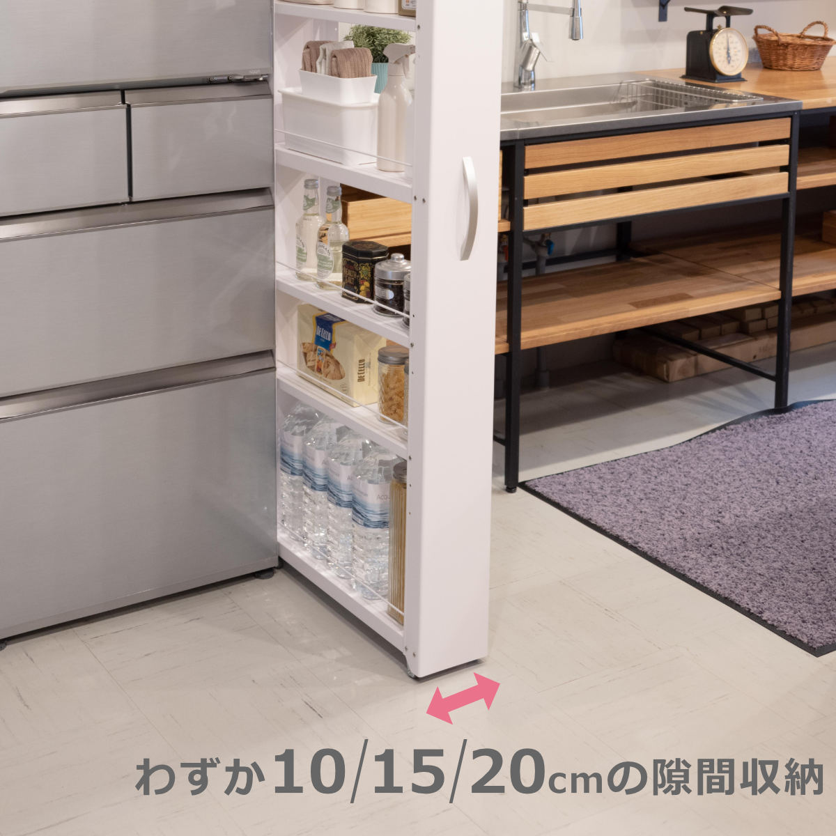 サイズ【幅10cm・高さ85cm】約 幅10.6×奥行55.5×高さ85.4(cm)【幅10cm・高さ165cm】約 幅10.6×奥行55.5×高さ165.4(cm)【幅15cm・高さ85cm】約 幅15.6×奥行55.5×高さ85.4(cm)【幅15cm・高さ165cm】約 幅15.6×奥行55.5×高さ165.4(cm)【幅20cm・高さ85cm】約 幅20.6×奥行57.7×高さ85.4(cm)【幅20cm・高さ165cm】約 幅20.6×奥行57.7×高さ165.4(cm)重量【幅10cm・高さ85cm】約 3.36kg【幅10cm・高さ165cm】約 4.16kg【幅15cm・高さ85cm】約 6.09kg【幅15cm・高さ165cm】約 7.59kg【幅20cm・高さ85cm】約 5.12kg【幅20cm・高さ165cm】約 9.45kg内容量1台材質本体、ガード:スチール(粉体樹脂塗装)取っ手:ABS樹脂(塗装)ネジキャップ:ポリエチレンキャスター:ポリウレタンカラーホワイト、ブラック生産国中国製耐荷重【幅10cm・高さ85cm】約 30kg【幅10cm・高さ165cm】約 30kg【幅15cm・高さ85cm】約 50kg【幅15cm・高さ165cm】約 50kg【幅20cm・高さ85cm】約 30kg【幅20cm・高さ165cm】約 50kg組立状態お客様組立品注意事項※商品ページ内には別の商品を含む画像を使用しています備考転落防止の金具付き必要工具:プラスドライバー区分返品・キャンセル区分(大型商品)●キッチンや洗面所のちょっとした隙間を収納スペースとして有効活用できるトールワゴンです。●缶詰や調味料、ペットボトル、洗剤など様々なものを一括に収納することができます。●本体は高級感のあるスチール製でサビやカビにも強く、水回りの収納にピッタリです。●設置場所、収納量に合わせて6サイズからお選びいただけます。●棚は可動式なので5cm間隔でお好みの高さに調整できます。●取っ手とキャスター付きなので、隙間からも出し入れが簡単です。隙間からでも出し入れが簡単な取っ手とキャスター付きです。床に傷がつくのを防ぐためにポリウレタン巻きのキャスターを使用しています。左右どちらからでも取り出せるように両側はオープン仕様になっています。よく使う物は上段に、ストックしている物は下段に収納することで、使いやすい配置にでき毎日の家事がよりスムーズに。隙間から出す時に収納している物が落下するのを防ぐために、各段の両側には転び止めのバーが付いています。棚の高さは、5cm間隔、3段階で調節できます。高さのある2Lのペットボトルや調味料のボトルも収納できます。生活感の出る調味料や洗剤のボトルを隠して収納できます。どんな空間にも馴染むシンプルなデザインは見せないキッチン収納に最適です。キッチンではよく使う調味料や食品のストックの収納に、ランドリーでは洗剤やタオルの収納に使えます。マグネットの付くスチール製だからキッチンタイマーやフックも付けられます。木製やプラスチックのワゴンに比べると強度に優れているスチール製だから、たくさん物を収納してもしっかりと支えてくれます。また、スチールには粉体塗装が施されているのでサビやカビにも強く、汚れても拭き取りやすいので水回りの収納にピッタリです。種類サイズ関連キーワード:ラック ストッカー キッチン 隙間 すきま すき間 収納 ワゴン 洗面所 リビング スチール製 キャスター 幅 10cm 15cm 20cm 10 15 20 85cm 165cm 85 165 ホワイト ブラック 白 黒 可動棚 丈夫 棚 スチールワゴン すき間ワゴン オープンラック 細い スマート デッドスペース 省スペース 有効活用 隙間にぴったり ピッタリ 清潔感 シンプル 脱衣所 サニタリー 洗面台横 洗濯機横 便利 役立つ おすすめ オススメ キッチン用品 キッチンアイテム スチール 磁石 マグネット関連商品はこちら キッチンストッカー トールワゴン 幅20cm19,800円 キッチンストッカー トールワゴン 幅15cm10,800円 キッチンストッカー トールワゴン 幅10cm16,800円 キッチンストッカー トールワゴン 幅20cm12,800円 キッチンストッカー トールワゴン 幅10cm9,580円キッチンストッカー ステンレスすき間収納 幅126,900円キッチンストッカー ステンレスすき間収納 幅117,900円キッチンストッカー ステンレスすき間収納 幅229,900円キッチンストッカー ステンレスすき間収納 幅219,900円キッチンストッカー ステンレスすき間収納 幅124,900円キッチンストッカー ステンレスすき間収納 幅115,900円キッチンストッカー ステンレスすき間ラック 幅18,800円