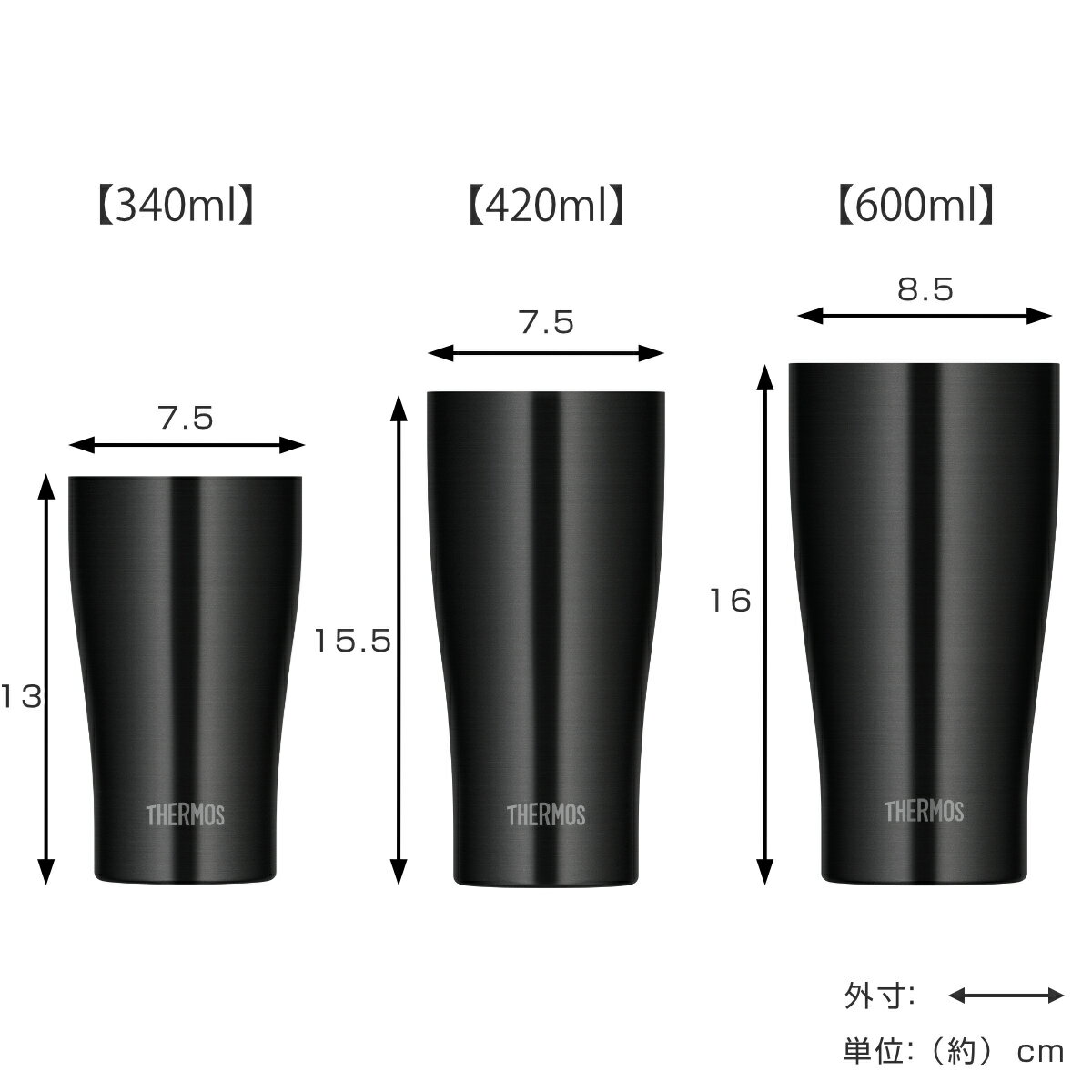 サイズ【340ml】約 高さ13(cm)直径:約 7.5(cm)口径:約 7.3(cm)【420ml】約 高さ15.5(cm)直径:約 7.5(cm)口径:約 7.3(cm)【600ml】約 高さ16(cm)直径:約 8.5(cm)口径:約 8.3(cm)重量【340ml】約 200g【420ml】約 200g【600ml】約 300g容量【340ml】約 340ml【420ml】約 420ml【600ml】約 600ml内容量1個材質ステンレス鋼(ステンレス以外:アクリル樹脂塗装)カラーステンレス、ブラック、ミント、オーシャンブルー、カカオ生産国マレーシア製保冷効力7度以下(1時間)食器洗い乾燥機使用可能電子レンジ使用不可備考※重量は商品によって個体差があるため多少の誤差があります区分返品・キャンセル区分(小型商品)ギフトラッピングページを見る●美味しい温度を長時間キープする真空断熱タンブラーです。●容量は340ml、420ml、600mlの3サイズからお選びいただけます。●結露しにくくテーブルを汚しません。●熱い飲み物を入れても外側が熱くなりにくいので、持ちやすいです。おすすめポイント美味しい温度を長時間キープする真空断熱タンブラー飲み頃の温度をキープするステンレス魔法びん構造のタンブラーです。容量は340ml、420ml、600mlの3サイズからお選びいただけます。アウトドアやホームパーティー、スポーツ観戦、様々な場面でおすすめです。ホットもアイスも真空断熱の二重構造なので、結露しにくくテーブルを汚しません。また、熱を伝えにくいので熱い飲み物を入れても外側が熱くなりにくく、安心して持つことができます。抜群の保冷力サーモス自慢の保冷力で長時間の保冷が可能です。冷水と氷を入れたタンブラーを6時間放置した場合でも、多くの氷が残ったままの状態をキープします。【保冷効力】7度以下(室温20度±2度において水温が4度のときから1時間放置した場合)豊富なカラーバリエーション各容量に5色のカラーバリエーションがあります。家族で揃えて使ったり、シーン別に複数の購入にもおすすめです。商品詳細お手入れも簡単、食洗機対応ステンレス製ですが食洗機に対応しているのも嬉しいポイント。毎日の手入れも簡単に済ませることができます。タンブラー対応、専用パーツ別売りの専用フタと専用ソコカバーを組み合わせて、オリジナルのタンブラーをカスタマイズすることもできます。カラーサイズ対応しているパーツ・オプション340・420ml対応フタ340・420ml対応ソコカバー600ml対応フタ600ml対応ソコカバー関連キーワード:ICE ice HOT hot 保温タンブラー 保冷タンブラー フタなし 冷めにくい ステンレスカップ 紅茶 お茶 アルコール ハイボール ビール テーブルウェア 食器 オシャレ お洒落 おすすめ 人気 便利 日常使い オススメ 日常 贈り物 お祝い お返し 引っ越し祝い 新生活 大人 シンプル スタイリッシュ 男女専用 男性 女性 カップル 夫婦 お揃い シルバー ブラック 黒 グリーン 緑 ブルー 青 ピンク JDY-340 S JDY-340C JDY-420 JDY-420C JDY-600 JDY-600C LH5238関連商品はこちらペアタンブラー 400ml 真空断熱 ステンレ3,260円ペアタンブラー 300ml 真空断熱 ステンレ2,640円タンブラー 600ml 真空断熱 ステンレス 3,050円サーモス タンブラー 340ml 真空断熱 ス2,280円サーモス タンブラー 340ml 真空断熱 ス2,580円サーモス タンブラー 420ml 真空断熱 ス2,880円サーモス タンブラー 420ml 真空断熱 ス2,580円サーモス タンブラー 600ml 真空断熱 ス2,880円サーモス タンブラー 280ml 真空断熱 カ2,130円サーモス タンブラー 360ml 真空断熱 カ1,380円サーモス タンブラー 280ml 真空断熱 カ1,180円サーモス タンブラー 2個入り 360ml 真3,260円