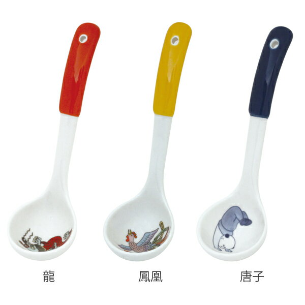 レンゲ 16cm おまち堂 ひとくちおたま 中華食器 お玉 磁器 同色3個セット ( 食洗機対応 れんげ スプーン カトラリー ラーメン 蓮華 スープ 昔ながら ラーメンレンゲ 中華柄 龍 鳳凰 唐子 )