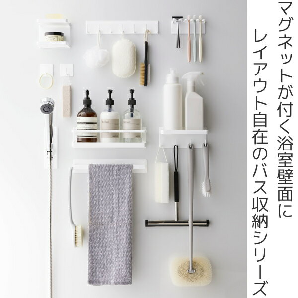 山崎実業 MIST マグネットバスルームラック ミスト ワイド ( 4903208042376 お風呂 ラック フック 収納 浴室収納 棚 収納ラック 磁石 トレー トレイ ボトル ディスペンサー 洗顔 歯磨き粉 スタンド シェルフ )